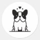This sticker features a cute, cartoon-style drawing of a dog with three small hearts above its head. The dog is a mixed breed with black and white fur and a wrinkled face. It has closed eyes and a simple yet expressive face. The sticker is monochromatic – black drawings on a white background. The sticker can be used for various purposes, such as decorating albums, diaries, scrapbooks, or as a playful element for children’s items. The sticker is made of high-quality vinyl and has a smooth and glossy finish. This sticker is a perfect gift for any dog lover or anyone who likes cute and funny art.
