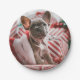 French Bulldog in Christmas Hat Paper Plate