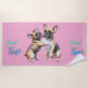Adorable French Bulldogs are very much in love. The Bully lady has colorful hair accessories and draws all the attention. Very beautiful and funny illustration of two great dogs. The Bully jumps up on his friend and definitely wants to play. A great gift for any animal lover. Bulldogs love adventure and enjoy time with people and animals.