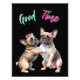Adorable French Bulldogs are very much in love. The Bully lady has colorful hair accessories and draws all the attention. Very beautiful and funny illustration of two great dogs. The Bully jumps up on his friend and definitely wants to play. A great gift for any animal lover. Bulldogs love adventure and enjoy time with people and animals.