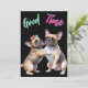 Adorable French Bulldogs are very much in love. The Bully lady has colorful hair accessories and draws all the attention. Very beautiful and funny illustration of two great dogs. The Bully jumps up on his friend and definitely wants to play. A great gift for any animal lover. Bulldogs love adventure and enjoy time with people and animals.