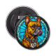 Very cute and compact little bottle opener. Also very fond of the magnet, both for sticking to the fridge and holding on to the bottle cap when trying to open it. Good quality print. As pictured.