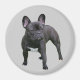 The French Bulldog is a gentle breed that typically has a happy-go-lucky attitude. Like many other companion dog breeds they require close contact with humans. They have fairly minimal exercise needs, but do require at least daily walks. Their calm nature makes them excellent choices for apartment dwellers, as does their usually sensible attitude towards barking. The breed is small and muscular with heavy bone structure, a smooth coat, a short face and trademark "bat" ears. Prized for their affectionate natures and even dispositions, they are generally active and alert, but not unduly boisterous. As a flat faced breed, it is essential that owners understand that French Bulldogs cannot live outdoors. Their bulk and their compromised breathing system makes it impossible for them to regulate their temperature efficiently. In addition, Frenchies are top heavy and therefore have a difficult time swimming. Precautions must be taken when exercising a Frenchie during hot or humid weather, as well.