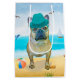 Cute dog sitting on beach is a perfect gift idea for someone who love this dog breed.