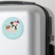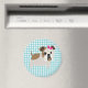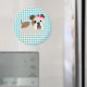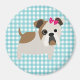 A very nice blue and white gingham pattern magnet with an adorable French bulldog with a pink polka dotted bow on her head!
