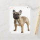 Aww...who can resist the cute face of a French Bulldog pup? This charming postcard features an image of a brown tan and black French Bulldog puppy dog highlighted against a crisp white background. She is ready to help you send greetings to family and friends.