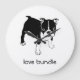 Enjoy this adorable "love bundle" (or "Your Text Here" to customise) French Bulldog puppy graphic large acrylic clock. Simply add your own text if you like to make it unique or just leave it cute the way it is. Makes a great gift for the dog or animal lover in your life as well. Ken-Ray studios