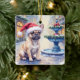 French Bulldog Snowy Town Fountain Santa Christmas Ceramic Ornament