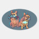 Two small French Bulldogs in comic style. The French Bulldog is a small molossian, very agile, athletic and alert. It is a clown among dog breeds and extremely lovable. The Bully is very fond of children and a loyal family dog. Due to its size, it is also easy to keep in the apartment, of course it loves its regular walk.
