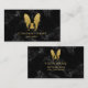 Business card template with marble texture ideal for dog care, dog walking, dog sitting, pet photographer services. The modern design shows french bulldog with gold glitter on the front, with your business name and tagline. The back shows your name and contact information.