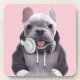 French Bulldog with Headphone Coaster