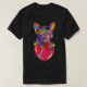 I give wanted to give this a 4 instead of a 5 because these Basic DARK T0shirts run unexpectedly SLIM or Narrow. Which is great if you do not have a potbelly, but I have a paunch. It isn't the shirt's fault that I've got a beer belly. The design and shirt itself is a quality cotton shirt. The color is more of a deep purple, but still a very pretty color. The Basic DARK T-shirts run a bit SLIMMER than the Basic Ts. The neck is a fraction narrower (or seems to be narrower) also. I'm a paunchy middle-aged woman and my neck is 12 inches (31cm) thick and the neckline fell about the same as in the photo of the man, and I had the desire to tug it a bit. So if you're a thick necked man or like loose shirts, be aware these are slimmer shirts. Once I get rid of my lockdown paunch it'll look great. The shirt washed well in cold water with no apparent bleeding. We don't have a dryer, so it hung dry. Did not shrink. Love the colors and the design. The design looks smaller on my shirt than it does on the model on-line. But still, it looks good on the shirt. The printing looks as it does on the model, just the size seems fractionally smaller. Washed garment in cold water, hung dry and design appeared unaffected.