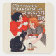 Compagnie Francaise des Chocolat et des Thes, or French Chocolate and Tea Company. This is a beautiful chocolate image of a mother, child, and lovely cat sitting at the table having a chocolate party. This chocolate party is very French, very Art Nouveau. The chocolate poster is in rich browns and reds, just perfect colours for chocolate lovers. The mummy is sipping from her chocolate cup, while the little girl is just starting to take a taste of cocoa from her spoon. The girl is watching her kitty, who is sitting on the table watching the whole chocolate party. About Compagnie Francaise des Chocolat et des Thes - The poster was created by Swiss artist Theophile Alexandre Steinlen in 1898, high time for beautiful Art Nouveau posters in Paris. Steinlen's trademark was cats, but he was also known for his wonderful images of cabarets performers and hundreds of magazine illustrations depicting everyday Parisian life. He lived in the avant-garde Montmartre section of Paris, and he and other artists including Toulouse Lautrec developed the Art Nouveau style.