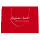 A red gift bag in French and English languages wishing merry christmas. The red used on this bag is a Christmas red colour making it very festive and Christmassy!
