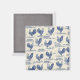 French Country Blue Roosters Fridge Magnet. Pattern design is one of my Grandma's old tablecloths.