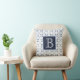 Crisp blue and white design set off this monogrammed pillow for a perfect accent in your home. French country print has a vintage appeal. Monogram can be customised or removed to make this pillow your own! Great unique gift idea!