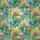 This fabric features watercolor honeysuckle flowers on a blue background.