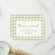 Romantic country cottage cabin core style summer sage grass green and off white gingham chequered plaid pattern. With a matching white text box on with a fully editable Thank You text the front of the card and the reverse side fully patterned without a text box. There is also a version of this card with text boxes on both sides. This design has a fixed background, but the size and position of the pattern can be changed.