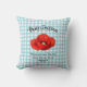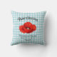 French Country Perfume Red Poppy Teal Chequered Cushion