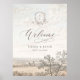 An elegant personalized wedding welcome poster featuring a delicate French country landscape and custom monogram initials. A perfect entrance sign for wedding receptions, garden weddings, and rustic celebrations.
