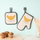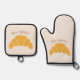An Oven Mitt & Pot Holder Set with a French croissant and customisable text inside: "Bon Appétit !". Perfect to make a gift to a baker, a best friend or for newlyweds or just for your kitchen decoration!