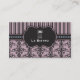 A lovely French-inspired damask and stripe design features a elegant lavender background and black medallion adorned with crisp white knife, spoon and fork logo. Perfect business card for an restaurant, chef, caterer or other fine food industry company.
