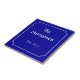 Patterned after French street signs and address numbers. Narrow white border with reverse circle filets at the corners. Dark blue background. Ceramic number tiles. You customise with your surname. First names can be added or other customisation can be done if desired.