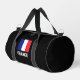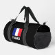 French flag personalised Duffle Bag. Cool bag for sports gear, gym, fitness, work, travel etc. Custom colour design with personalised text.