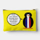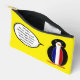 Ms. Penguin appears in her French Flag vest on this accessory pouch. Great for travelling. You can personalise it by placing words in the talking penguin's talk bubble. Image shows on front and back. You can also customise the background colour. Great gift for a traveller.