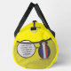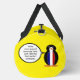 Ms. Penguin appears in her French Flag vest on this personalised duffle bag. Great for travelling. You can personalise it by placing words in the talking penguin's talk bubble. Image shows on sides of bag for uniqueness. You can also customise the background colour. Great gift for a traveller.