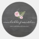 Coordinates with the FRENCH FLORAL BOUQUET on CHALKBOARD Business Card Template by 1201AM. A bouquet of French roses, vines and leaves is paired with your name or business name in a stylish, cursive font for a feminine and artful logo on these personalised stickers. Set on a black chalkboard background image for an on-trend aesthetic. © 1201AM CREATIVE