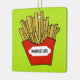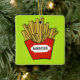 at christmass as a hanging decration for the chritmass tree.. its white porcline or cramic but very well made with added photo on one side.. also has a lovley red bag to keep it in.. execlent printed text in bold and black stands out well aganst the blue background of the photo.