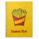 Cartoon illustration of small pack of french fries. Junk food outline icons yellow pattern background. Custom text.