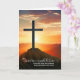 French translation front: My sincere condolences. You are in my thoughts and in my heart. Inside: I am sorry for your loss. Lovely mountain sunset with a cross. A gorgeous sympathy card with sentiment you may change and spread His light to those mourning.