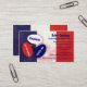 This is an awesome business card with a french flag in the background. The colours are blue and red with a fun grunge texture. The foreground has speech bubbles with french words inside of them. This card is great for an French language tutor or a teacher.