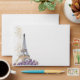 Romantic and elegant, Paris themed envelope with a watercolor illustration of the Eiffel Tower. The design is decorated with French Lavender and finely sketched gold flowers.