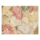 A pretty vintage collage, of french letters and post cards with faint pink roses overlaid at the top and bottom