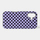 A checkerboard pattern with alternating lavender and black squares fills the image. The repeating geometric design gives a balanced and rhythmic appearance.
