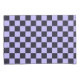 A checkerboard pattern with alternating lavender and black squares fills the image. The repeating geometric design gives a balanced and rhythmic appearance.