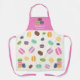 An apron for lovers of French Macarons. It comes with a pattern of colourful macarons, a customisable text on a pink background on the top. This could make a perfect gift for a friend who loves cooking sweet treats or a pastry chef!