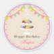 French Macarons Birthday Party Blue Gingham Classic Round Sticker