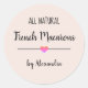 Modern "French macarons" sticker with a black font on a blush pink background embellished by a cute red heart. Customise text.