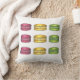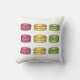 Pillow features an original marker illustration of a row of delicious French macaron cookies.