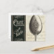 © Pela Studio / Wild Apple. An image of a spoon with a menu on the side. There are words written on the tan coloured background behind the spoon.