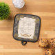 Some like it hot! But you can handle it in style with our sophisticated French style pot holder and/or oven mitt. These items coordinate with other products for kitchen and dining in our French Menu collection. The product designs feature fine cuisine courses and wines on a real vintage French restaurant menu. Borders are in shades of taupe, black, and cream in an elegant damask print, with the look of gilded accents,
