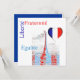 Custom invitation card with French Patriotic design . It features the Eiffel Tower and the principles of equality, citizenship and inalienable rights.It is designed in the colours of the national flag of France .Design by Alma Wad .