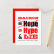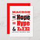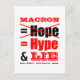 Macron isn't Hope but Hype and LIE!!! Design on postcard with red background in back. Available with other messages.