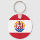 The flag of French Polynesia was adopted in 1984. Two red horizontal bands encase a wide white band; centred on the white band is a disc with a blue and white wave pattern depicting the sea on the lower half and a gold and white ray pattern depicting the sun on the upper half; a Polynesian canoe rides on the wave pattern; the canoe has a crew of five represented by five stars that symbolise the five island groups; red and white are traditional Polynesian colours.