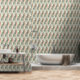 This seamless harlequin pattern features softly distressed diamond shapes in a muted French-inspired palette of sage, dusty blue, blush, linen, and warm neutrals. Inspired by vintage French wallpaper and mid-century interiors, this design blends structure with painterly texture for a timeless, elevated look.