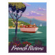 French Riviera coast Motorboat poster vintage. Resort, French Riviera Nice coast poster vintage. Resort, coast, sea, beach. Retro style illustration vector isolated